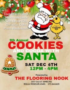The Flooring Nook is hosting their 9th annual Cookies & Cocoa with Santa event on Saturday, December 6 from 12-4 pm!