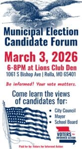 Voters for Informed Action will be hosting a municipal election candidate forum on March 3, 2026 from 6-8 pm at Lions Club Den. Come out and learn about the candidates so you can make an informed voting decision!